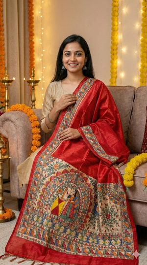 Hand-Painted Madhubani Dupattas – Wearable Folk Art from Mithila
