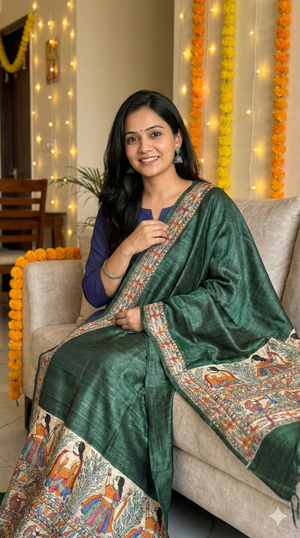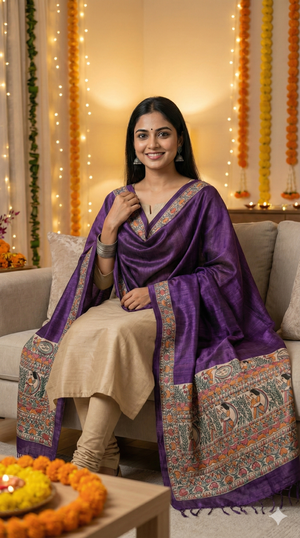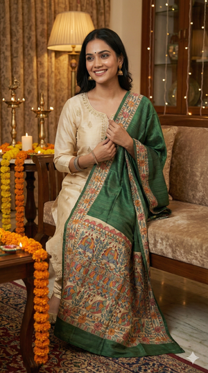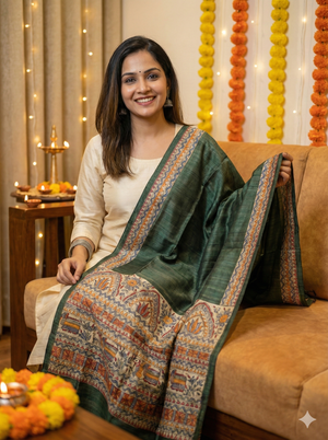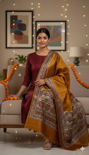 A Madhubani painted dupatta is more than an accessory—it is a story in motion. Draped lightly or styled for celebration, it carries the rhythm, symbolism, and soul of Mithila wherever you go.