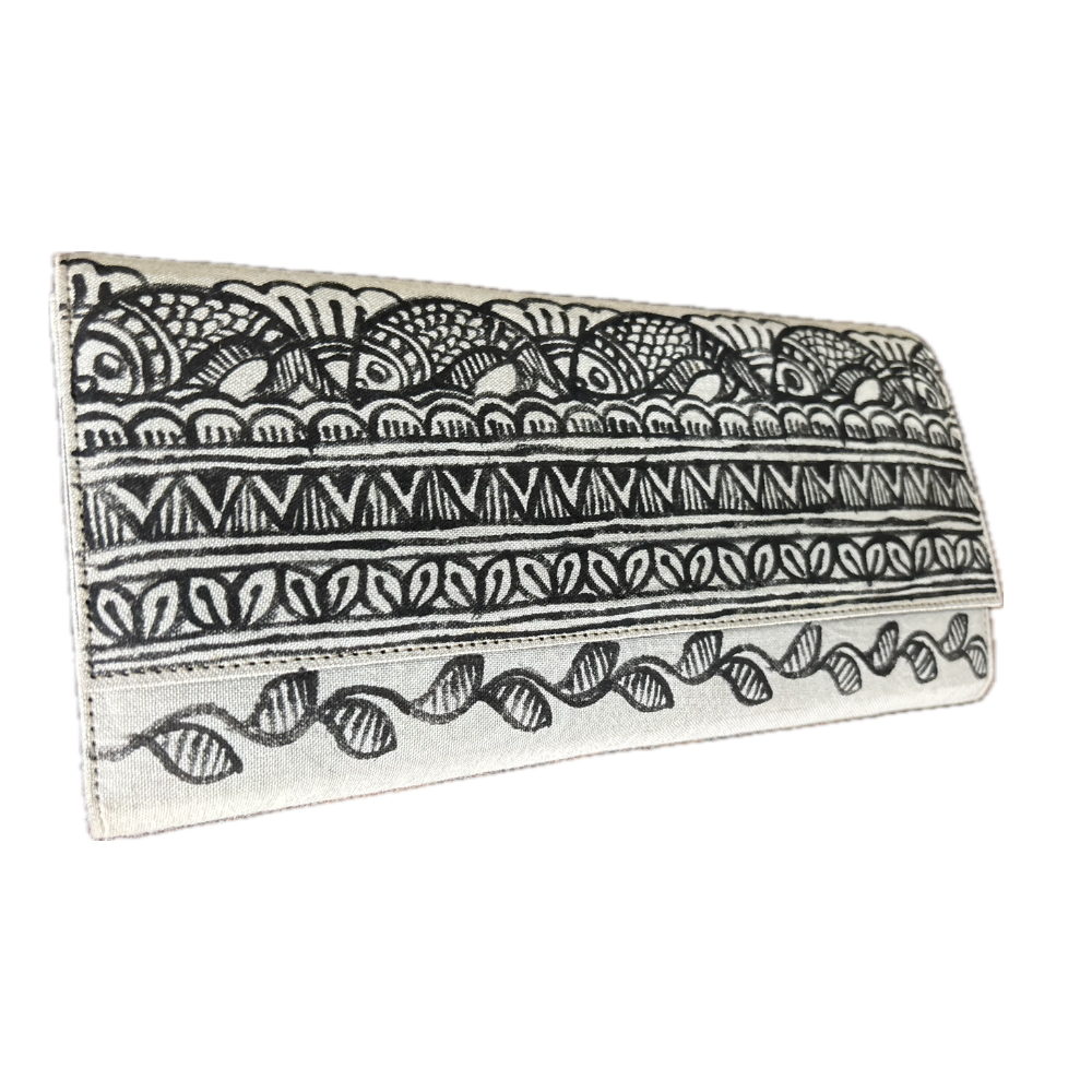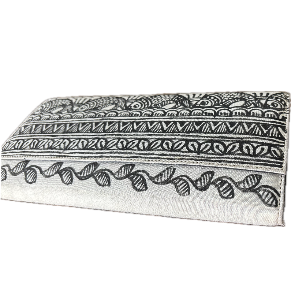 Madhubani Painted Handmade Monochrome Clutch Bag