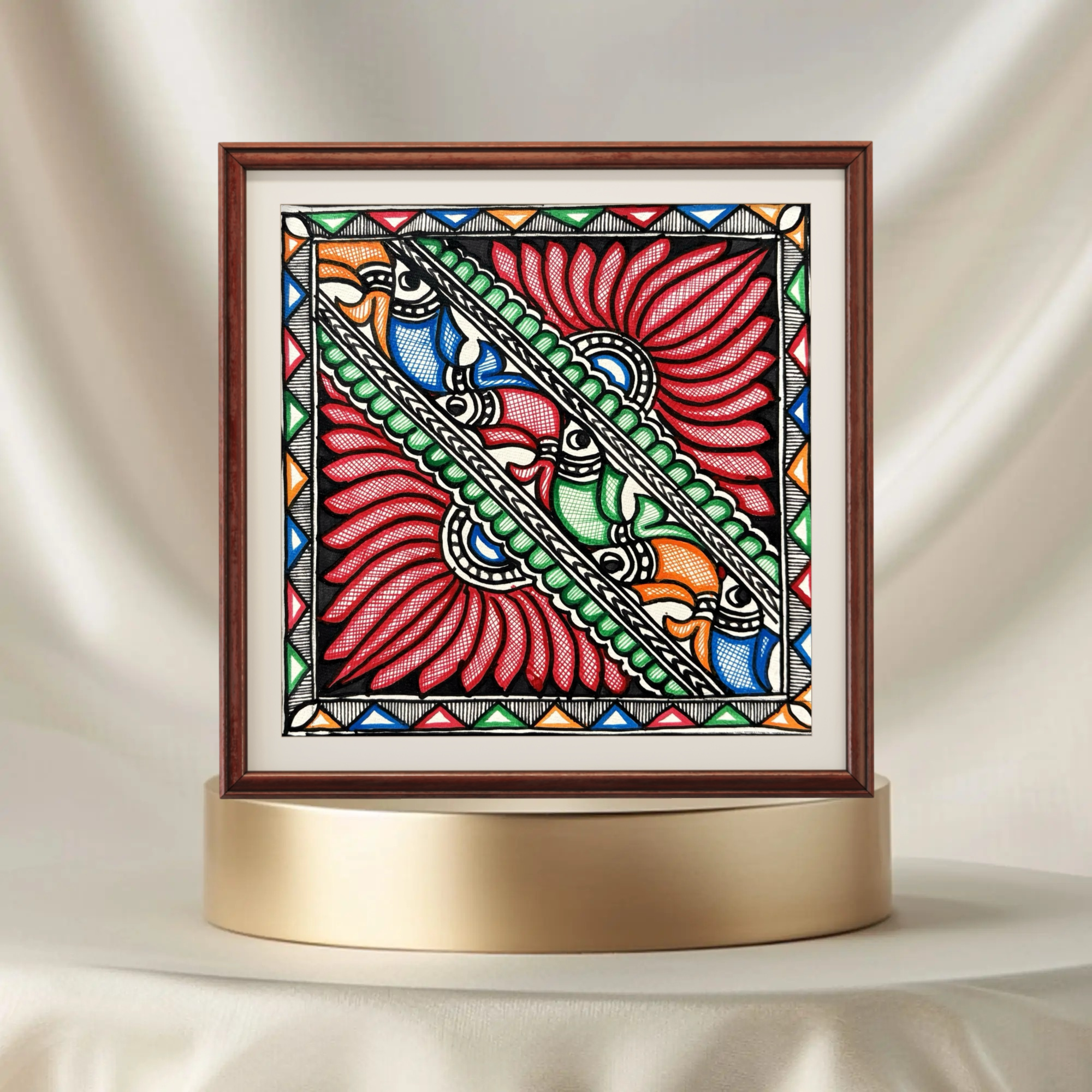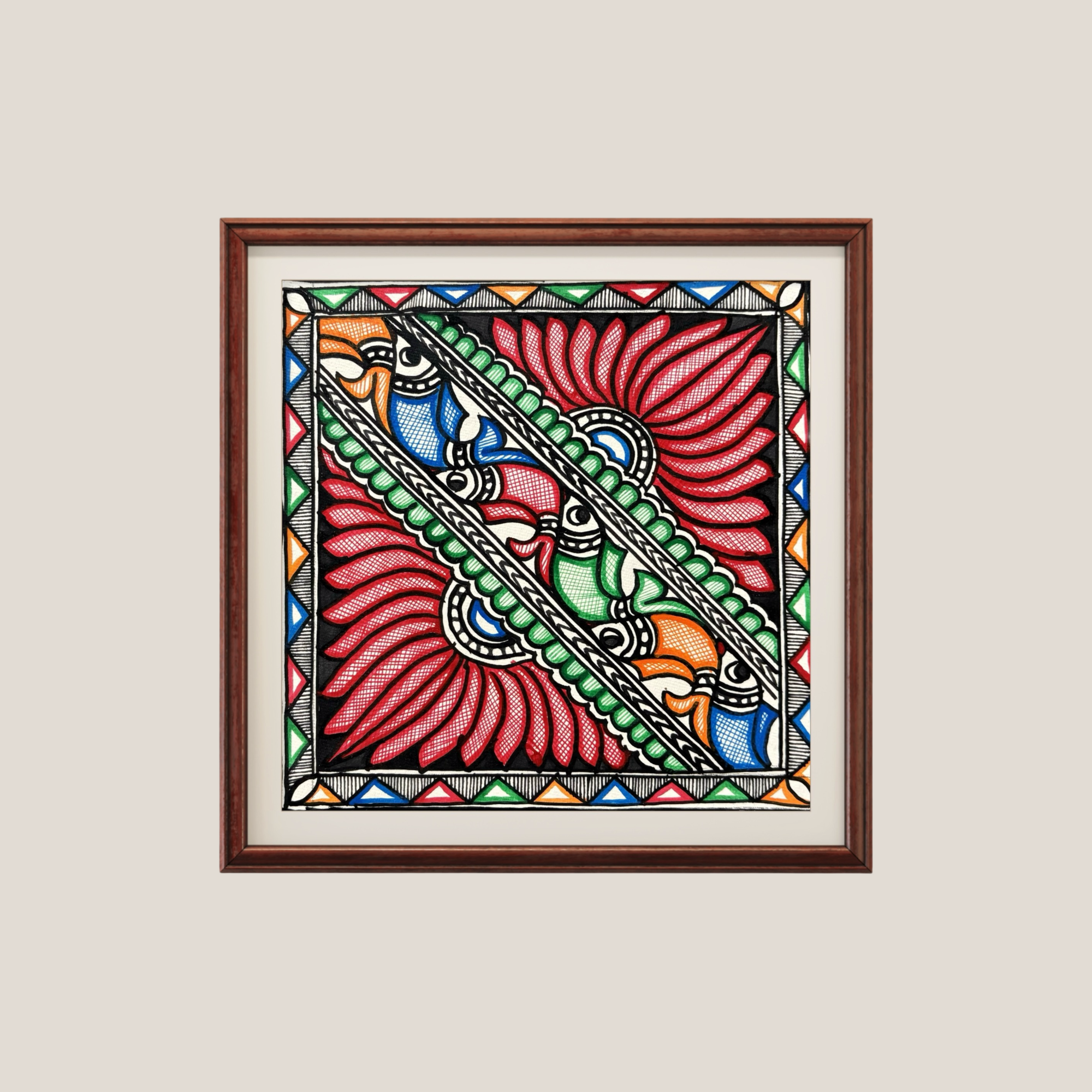• Authentic hand-painted artwork in the traditional Madhubani style on handmade paper