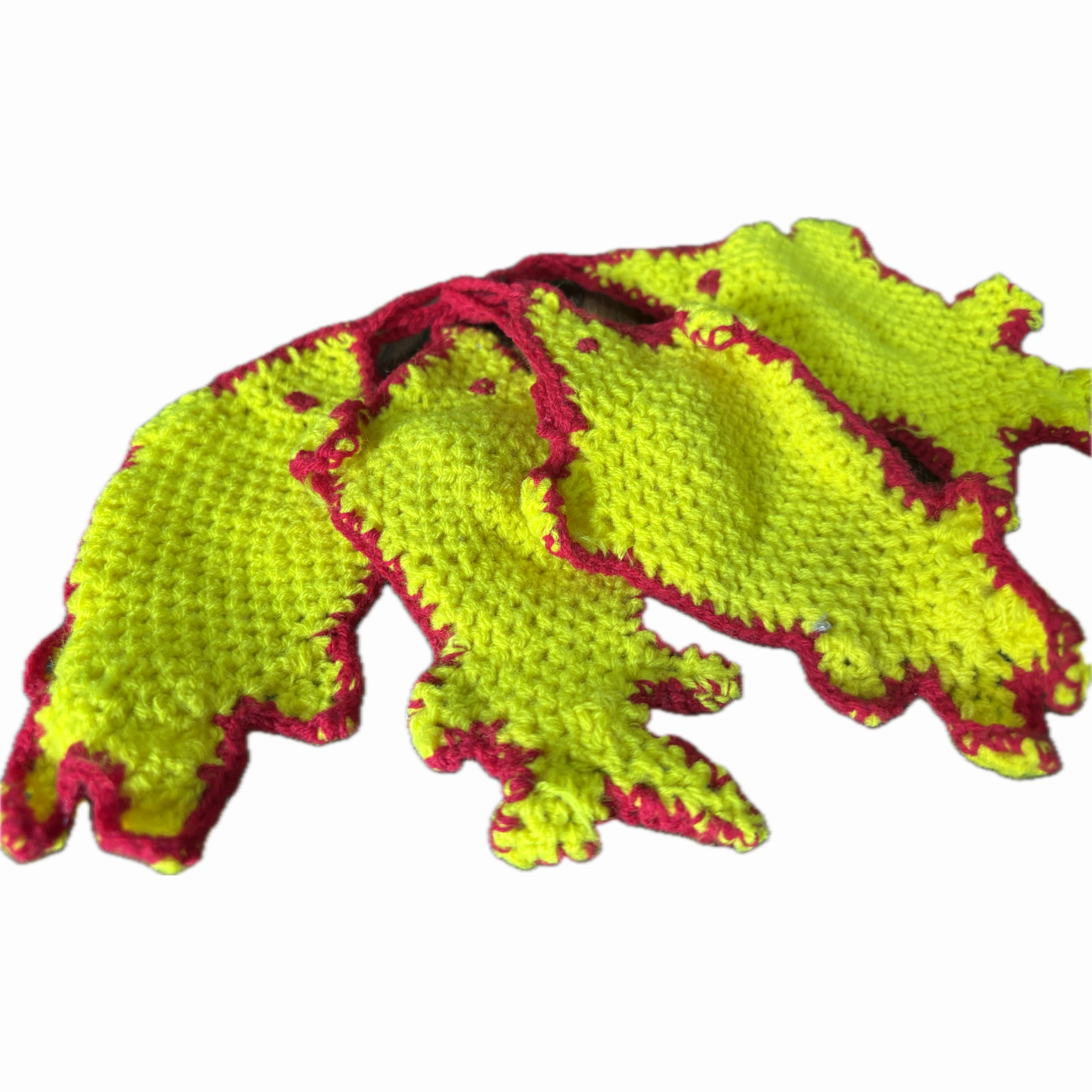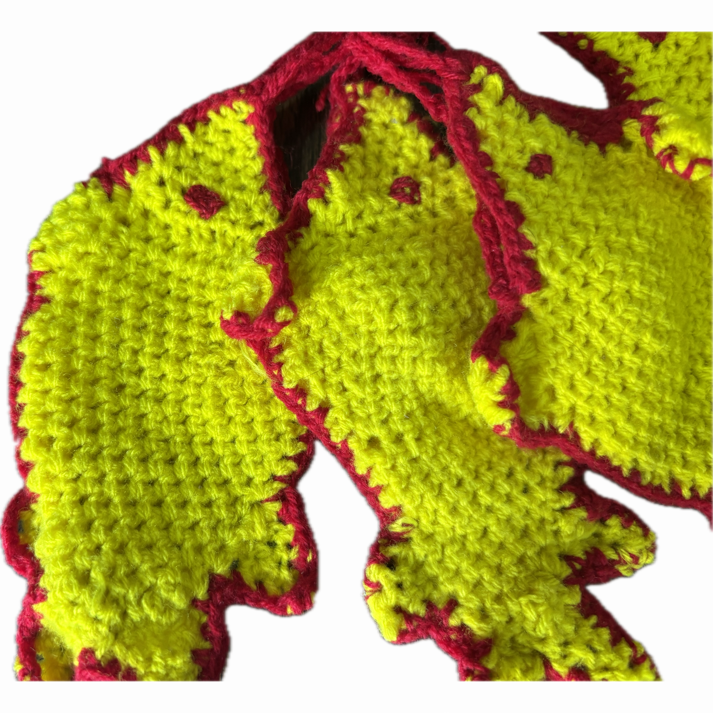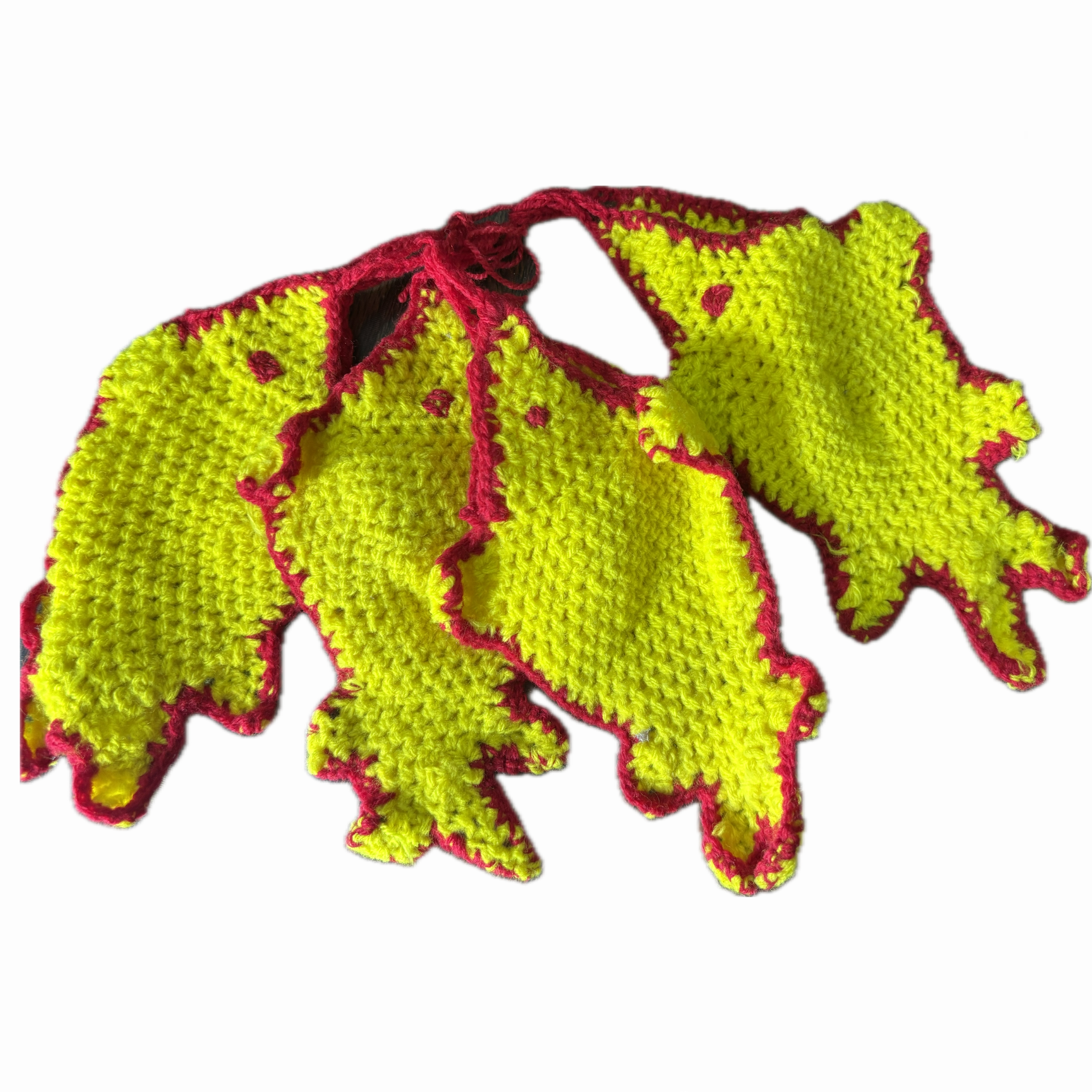 The Khootak Jhaba is a beloved symbol of Mithila’s folk tradition, especially crafted for newborns as a token of blessings and protection. Handmade in vibrant wool with fish-shaped crochet patterns, it carries deep cultural symbolism—the fish in Mithila art represents prosperity, fertility, and continuity of life.