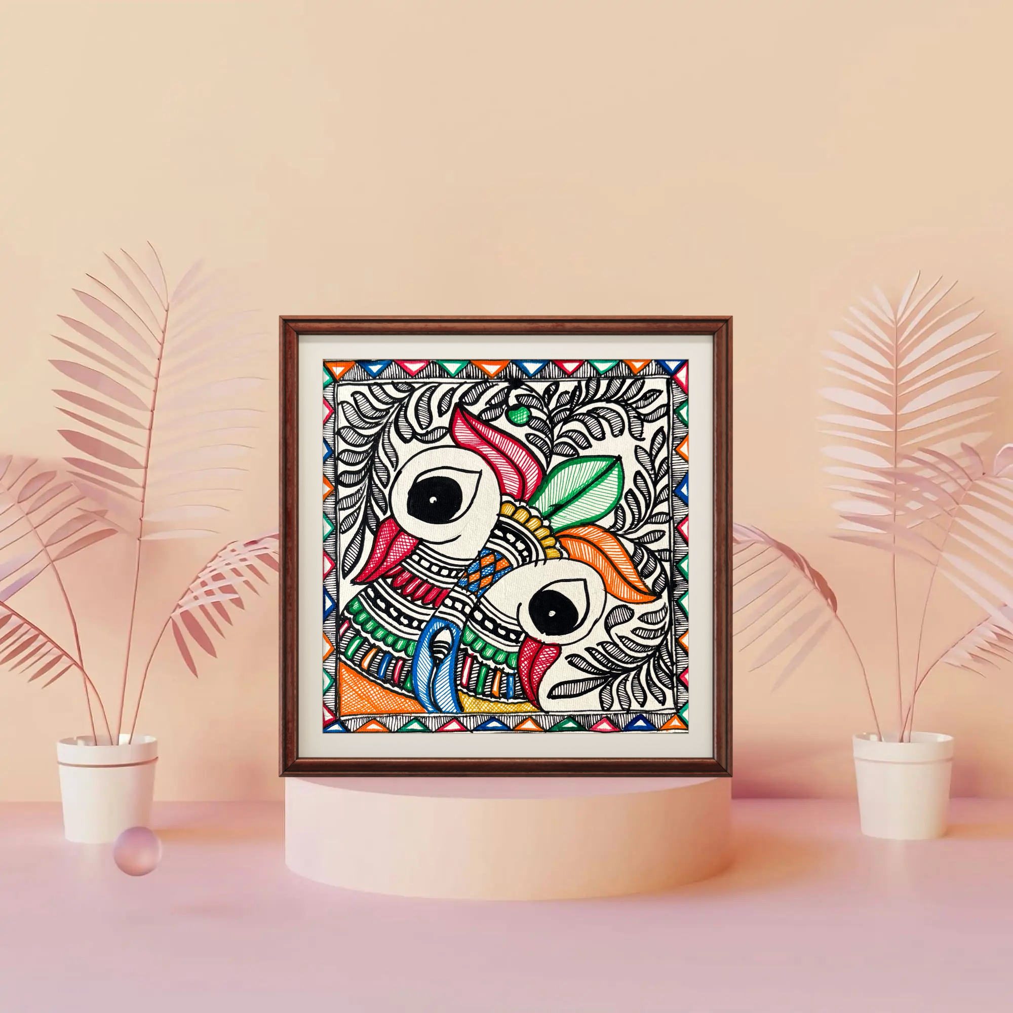 Madhubani Painting, also called Mithila Art or Mithila Painting, is a traditional folk painting from the ancient Mithila region of Bihar, India. Known for its vibrant colors and intricate patterns, it is considered more than decoration—it brings blessings, protects against evil, and honors the Gods.