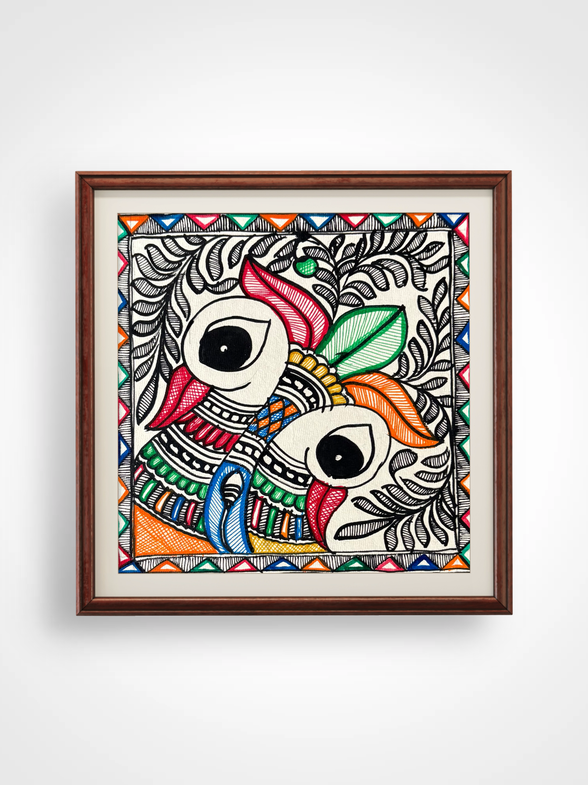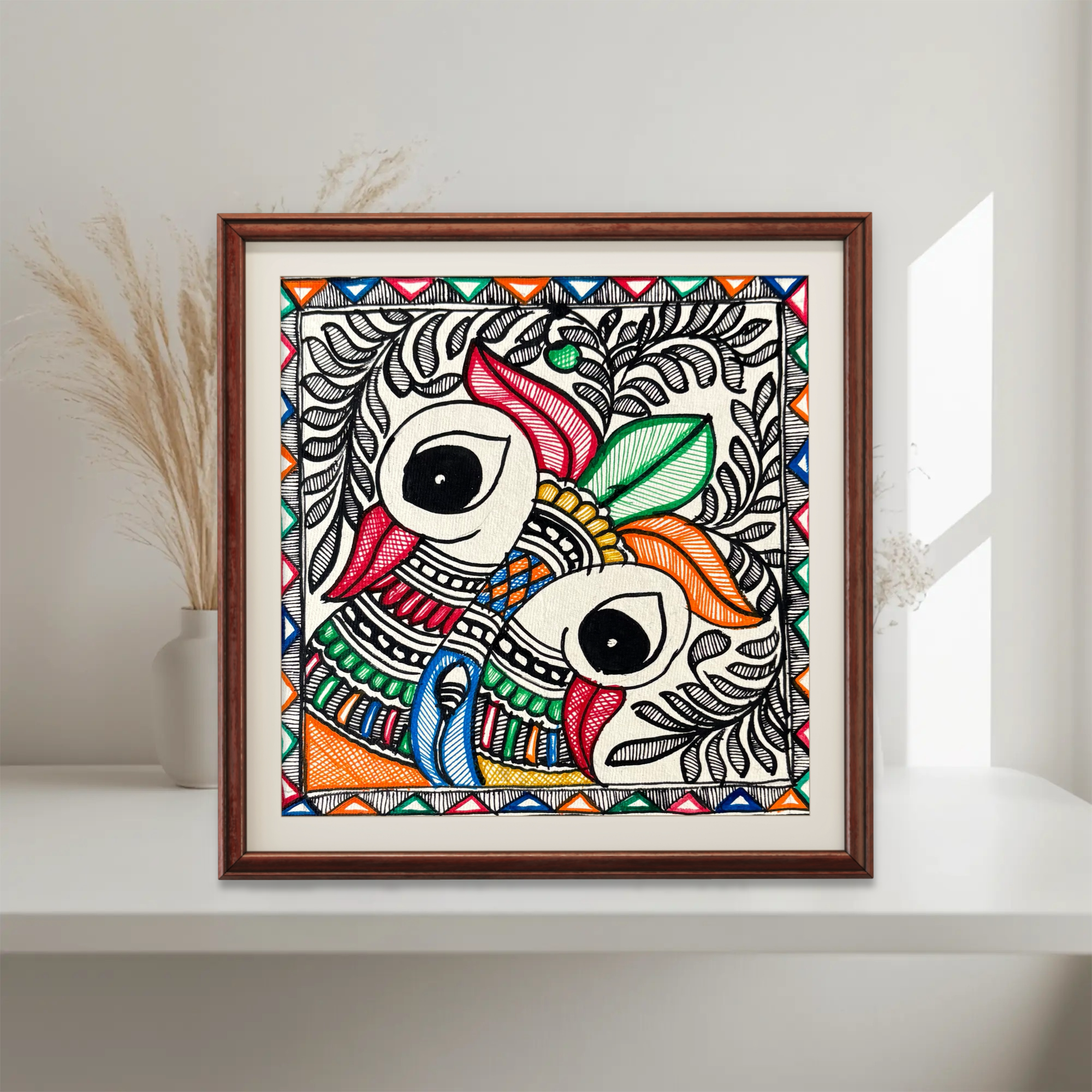 • Hand-painted in the traditional Madhubani style on handmade paper